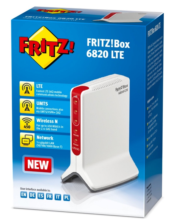 e la FRITZ!Box 6820 LTE, la première FRITZ!Box à supporter les normes 4G (LTE) et 3G (UMTS). Vous pouvez utiliser ce routeur compact et pratique à la maison comme en déplacement car vous ne dépendez plus du DSL ou d’une liaison filaire pour profiter de l’Internet ultra rapide via la 4G ainsi que de temps de chargement courts.