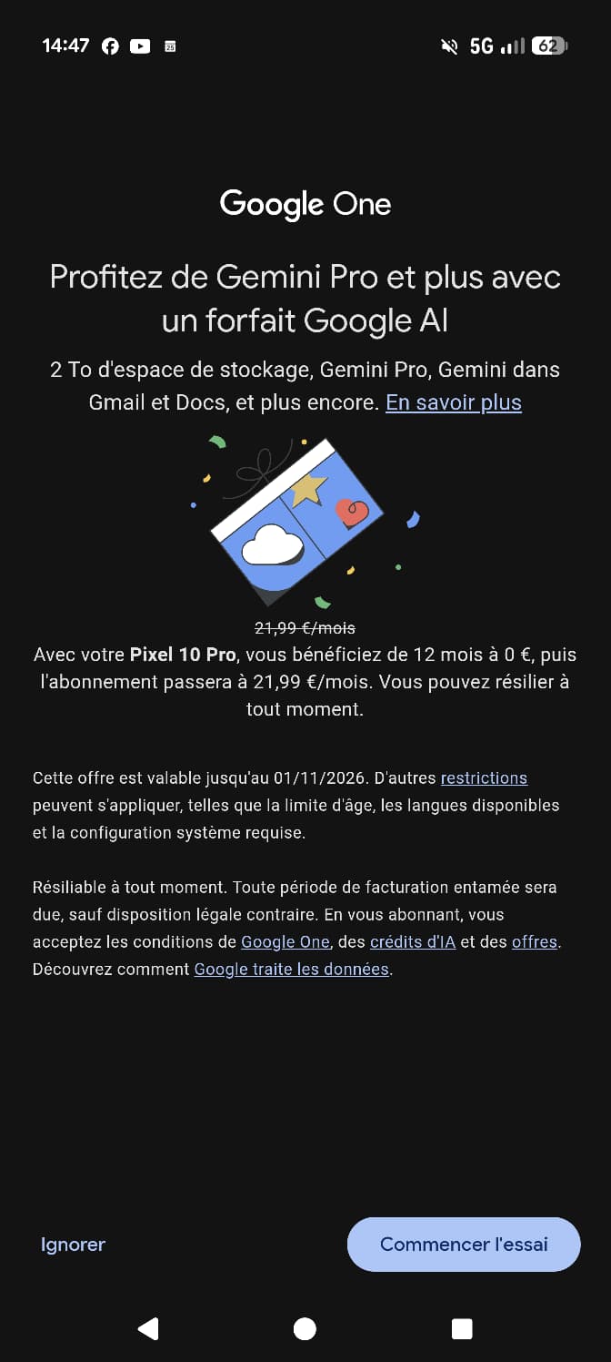 - Bonus Google One : 2 To de stockage + Gemini avancé inclus (même si moins généreux qu’avant).