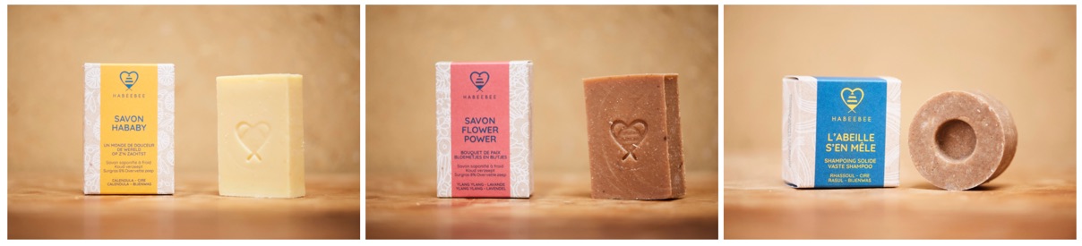 Le credo d’Habeebee : prendre soin des abeilles pour qu’elles prennent soin de nous. La savonnerie récupère uniquement le résidu des ruches et non pas le miel -laissé aux abeilles et aux « Habeebeeculteurs », la communauté d’apiculteurs qui participent au projet. Ces Habeebeeculteurs rapportent la cire d’abeille et la propolis à la fabrique de savon. C’est là que se déroulent une incroyable alchimie qui transforme les précieuses cire et propolis d’abeilles en produits de haute qualité. Savons, baumes à lèvres, élixir visage et corps, bougies… tous les soins ont des noms forts sympathiques : P’tit Beezou, Propre et Lisse, Hababy, Pied Total, Bees & Love,…