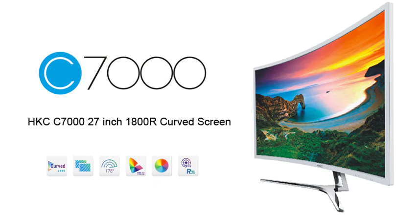 Le HKC C7000 est livré avec un câble HDMI, un câble d’alimentation et le manuel d’utilisation en Anglais.