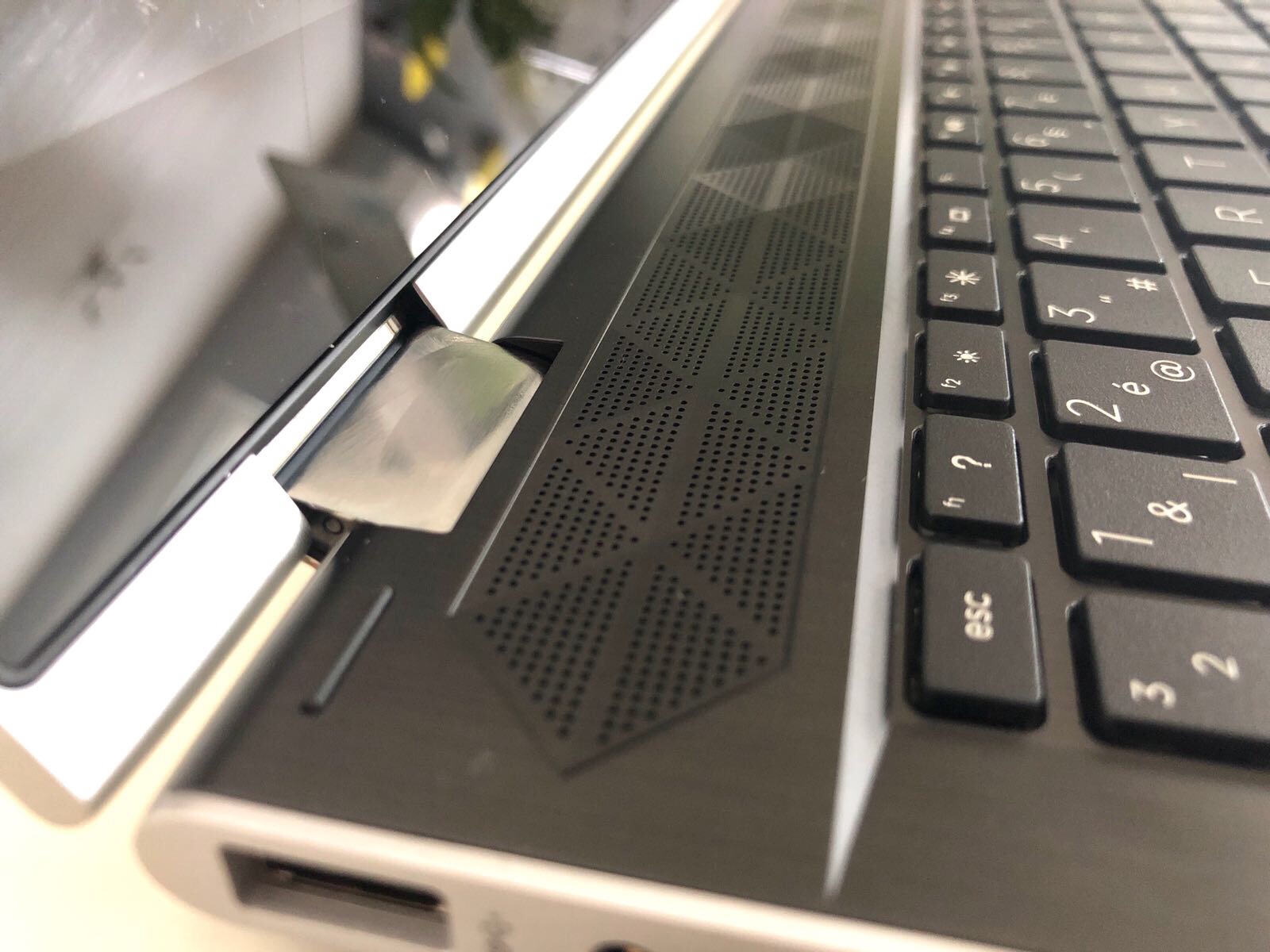 Pour le test, nous avons fait le choix du modèle standard 14 pouces qui conviendra à la plupart des utilisateurs. Il est équipé d’un processeur Intel dual core i5 8ème génération(1,60GHz-1,80GHz), d’un disque dur SSD de 512Go, 8Go de RAM et d’une carte graphique Nvidia Gforce MX130. Il dispose d’une dalle tactile IPS HD et est compatible avec l’utilisation d’un stylet (non inclus). Côté son, HP fait à nouveau confiance à Bang & Olufsen en équipant le HP Pavillon X360 d’une barre de son aux motifs géométriques plutôt bien foutue et qui renferme deux haut-parleurs dotés du système Audio Boost. Elle est située juste en dessous de l’écran.