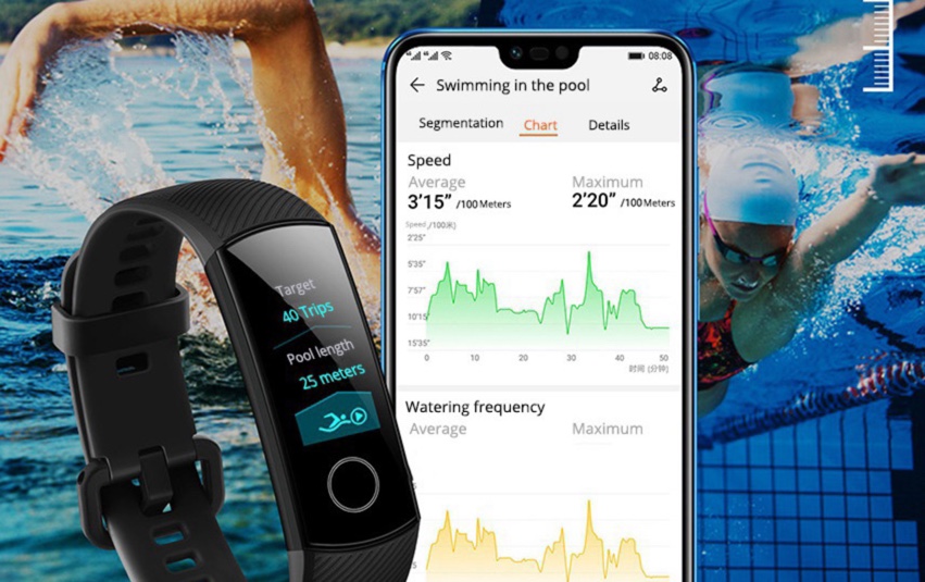 Elle propose aussi une surveillance permanente de votre rythme cardiaque et est résistante à l’eau. Vous pourrez donc sans souci l’utiliser en piscine ou dans le bain. Elle est capable de reconnaitre le style de nage pratiquée et fournira toutes ces informations à l’App qui vous proposera dés lors une bonne brouette de statistiques.