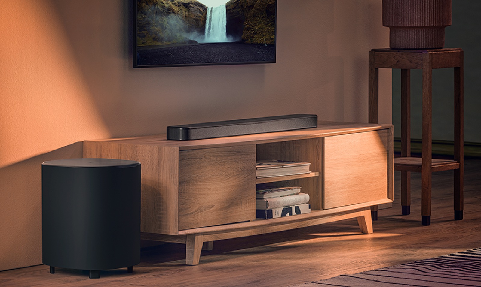 Le caisson de basses, quant à lui, ajoute une profondeur sonore remarquable, que ce soit pour les explosions d’un film ou le rythme d’une chanson de basses électroniques. Et comme il est sans fil, vous pouvez le déplacer selon vos envies, sans que les câbles viennent gâcher la déco.