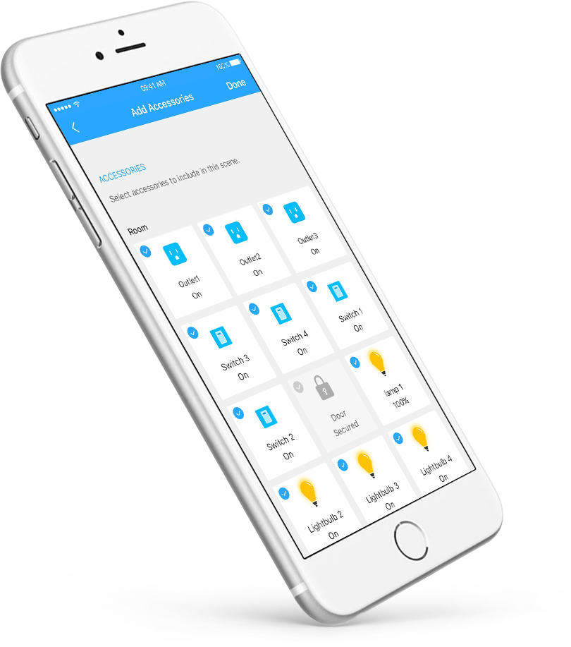 Une scène peut être activée/désactivée simplement en la tapotant, en définissant une tranche horaire ou en le demandant poliment à Siri.