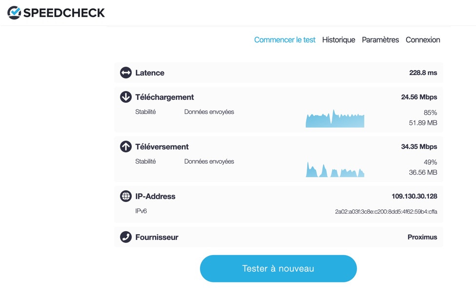 Donc, moralité, avant de jurer par tous les Dieux que votre connexion est une vraie bouse, vérifier votre bande passante sur des sites comme www.Speedcheck.org, en vous assurant que vous êtes seul sur votre réseau WiFi et, encore mieux, connecté avec un câble directement sur votre box Internet.