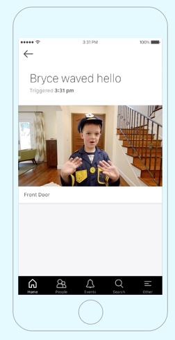 Lighthouse est donc capable de reconnaitre les différentes personnes présentes dans la maison, tout en y ajoutant une composante animale afin d’inclure toutes votre marmaille poilue miaulante et aboyante. Du côté des notifications en cas de détection visuelle ou simplement de connexion Bluetooth avec le système (votre fils vient de rentrer à la maison), vous pourrez vraiment affiner le tout dans les moindre détails : Prévenir qu’un individu non reconnu est rentré avec votre fille, recevoir une petite vidéo de votre fils s’il agite les bras devant la caméra (terrible fonctionnalité !) ou encore demander, via une reconnaissance vocale, si le chien a passé la porte vers 17 heures, période durant laquelle votre fiston est censé le promener pour qu’il soulage sa vessie au bord de l’explosion (le chien, pas le fils).