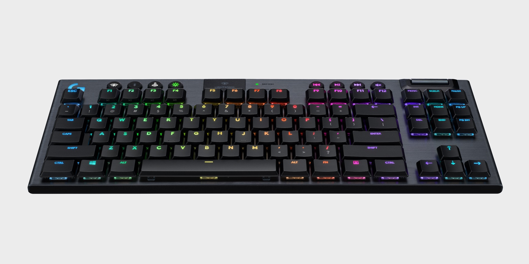 Le G915 TKL dispose de touches mécaniques basses de haute performance, moitié moins grandes que les mécaniques classiques, avec un actionnement 25 % plus rapide (2,0 mm pour les modèles standards) et une frappe plus confortable. Logitech propose de choisir entre trois types de touches : GL Linéaires, GL Tactiles et GL Clicky. La version tactile offre un actionnement perceptible pour les joueurs qui préfèrent un retour de frappe directe, la version linéaire offre pour sa part une frappe fluide. Pour sentir et entendre clairement le retour de frappe, c’est la version clicky qu’il faut privilégier.
