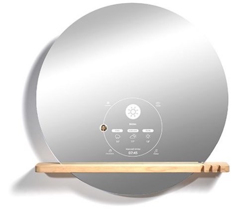 Mais cette routine pourrait bien être quelque peu bousculée grâce à Miliboo et son nouveau miroir connecté : Ekko. Disponible en deux versions : rectangulaire à poser ou circulaire à fixer au mur, cette glace qui rendrait la fée Carabosse totalement dingue sera disponible au printemps pour un petit 399€. Pardon ? 400 boules pour un miroir aussi grand qu’une pizza Dr Oetker alors qu’Ikea propose un sombre “SKOGSVÅG” à 29.99€ ?