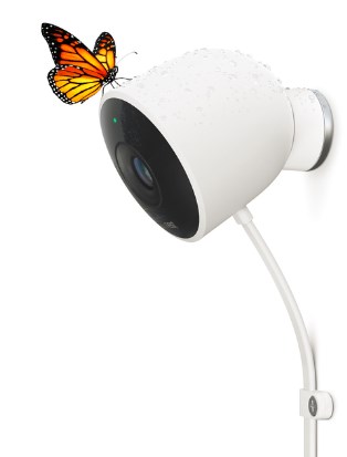 La Nest Outdoor offre une résolution full HD 1920×1080, un haut-parleur et un micro pour dialoguer avec la famille hérisson ou, plus accessoirement, avertir les voleurs de tondeuse à gazon que la police va débarquer illico. Son angle de vue est bien large : 130 degrés, épaulé par des LED pour la vision de nuit.