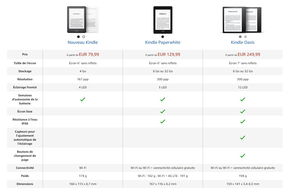 Le nouveau Kindle est vendu 79.99€ avec pub intégrée ou à 89.99€ sans aucune invitation à acheter un bouquin. En vente sur Amazon, bien évidemment. Par contre, bonne nouvelle, ce nouveau modèle engendre illico presto une diminution de l’ancien qui passe maintenant à 59.99€ au lieu de 69.99€.