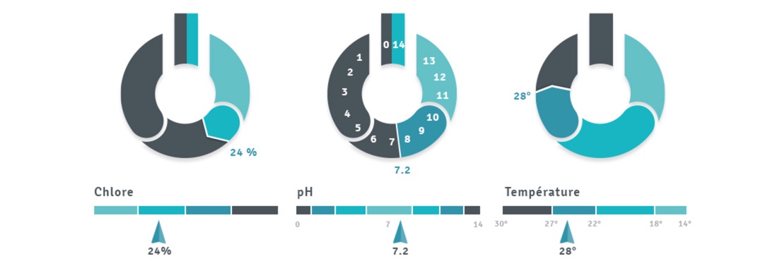 Evidemment, ce bel objet est connecté à votre smartphone, via Bluetooth/Sigfox, afin de recevoir les alertes ou consulter quand vous le souhaitez la bonne santé de votre piscine qui vous a coûté le prix d’une demi-maison. Un historique des mesures est même disponible afin d’afficher leur évolution, tout comme une série de bons conseils pour gérer votre mare chlorée en bon père de famille. Ce que je vous recommande d’ailleurs chaleureusement car c’est souvent ce même père de famille qui se charge de nettoyer le trou d’eau transformé en soupe au cerfeuil.