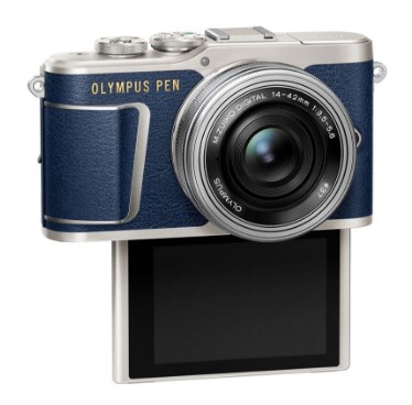 Le PEN E-PL9 bleu d’Olympus avec l’objectif M. Zuiko Digital 14-42 mm 1:3.5-5.6 EZ Pancake sera proposé au prix conseillé de 699€ à partir de début juin 2018.