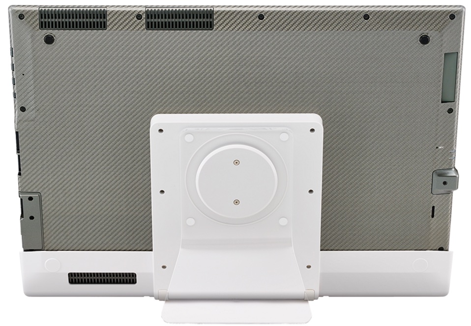 Il est aussi possible de la placer à la verticale grâce à une docking station vendue séparément afin de le transformer en PC de bureau.