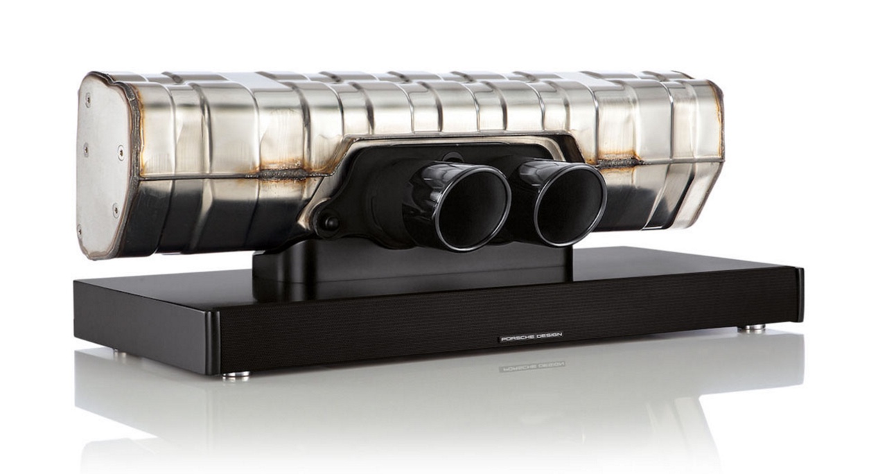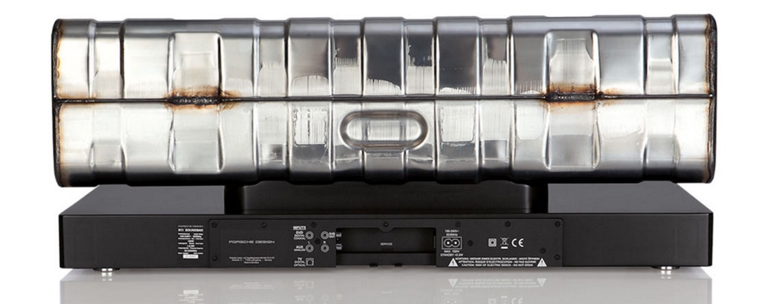 Cette 911 Soundbar ressemble, non, pardon, est fabriquée à partir d’un véritable pot d’échappement de la mythique Porsche 911 GT3. Fêlés, ces allemands. Cette assemblage de métal surplombe une barre plus classique intégrant une technologique plus classique : Système 2.1 épaulé d’un virtual suround, Bluetooth aptX pour y connecter votre smartphone, tablette ou PC, contrôle des aigus et des basses, décodeur Dolby et DTS, le tout offrant une puissance de 200W.
