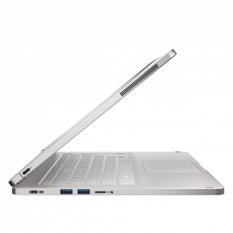 Mise à part son design léché, nous sommes face à un notebook haut de gamme : Ecran IPS de 13.3 pouces affichant une résolution de 3200×1800 pixels (QHD+), processeur de dernière génération Intel Core i7 Kaby Lake épaulé par 16 Go de RAM et un SSD de 512 Go (en PCIe). La batterie devrait tenir le coup durant 14 heures, d’après le fabricant. Du côté des connectiques, nous sommes sur le minimum vital (Qu’Apple devrait suivre) avec deux ports USB 3.1 Type-C (dont unThunderbolt), deux ports USB 3, un lecteur de carte SD et une prise jack micro/casque.
