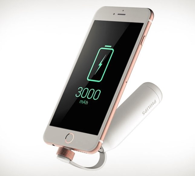 La Power Potion de Philips offre une charge de 3000 mAh et sera donc capable de recharger pleinement un smartphone haut de gamme du style d’un iPhone 6S Plus bien gourmand. Celui-ci ressemble à une petite fiole de parfum dont l’ouverture supérieure renferme un port Lightning pour iPhone.