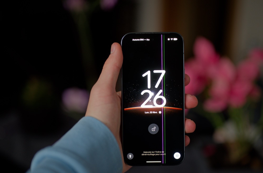 La ligne est apparue du jour au lendemain, sans mise à jour particulière ou événement spécifique. Redémarrage, vérification des paramètres… rien n’y fait. Je me suis dit que j’allais m’y faire tellement j’adore ce téléphone et que je ne voulais pas changer.