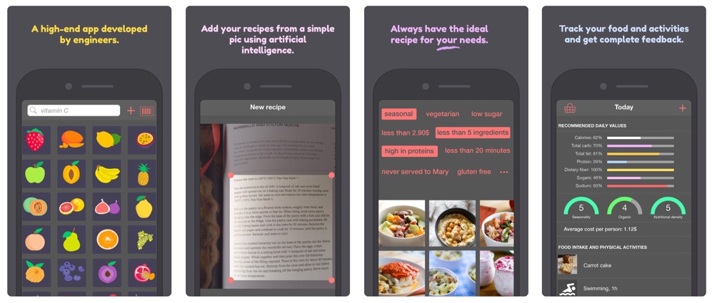 Avec RecipeTank, plus de recettes cuisinées en grand volume qui finissent au frigo … puis à la poubelle. L’application calcule automatiquement l’apport calorique de chaque recette et ajuste les quantités des ingrédients pour toujours cuisiner dans les bonnes quantités. Grâce à sa technologie basée sur l’intelligence artificielle, l’utilisateur ajoute une recette depuis un livre en moins de 2 minutes à partir d’une simple photo. Les ingrédients sont alors analysés et l’apport calorique déduit permet à l’application d’ajuster les quantités au mieux.