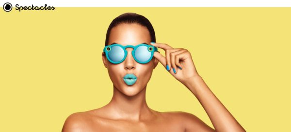 Le fondateur de Snapchat, Evan Spiegel, a envie d’évoluer et lance donc son premier produit physique et bien réel. Ces lunettes, une fois chaussée et connectée à votre smartphone, pourront capturer de petites vidéos de 10 secondes sur simple pression d’un petit bouton sur la branche. Le capteur photo permet un large angle de vue de 115 degrés afin de ressembler le plus possible au champ visuel humain.