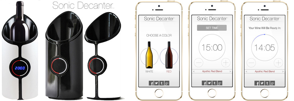 Conçu pour améliorer la saveur, la sensation en bouche et l’arôme du vin en 20 minutes, le Sonic Decanter utilise des ondes sonores à haute fréquence pour briser les molécules des éléments conservateurs du vin, tels que le dioxyde de soufre. Nous sommes donc là face à une transformation moléculaire et chimique de la structure du vin qui, in fine, va accélérer le processus de vieillissement. Cela, c’est pour la théorie.