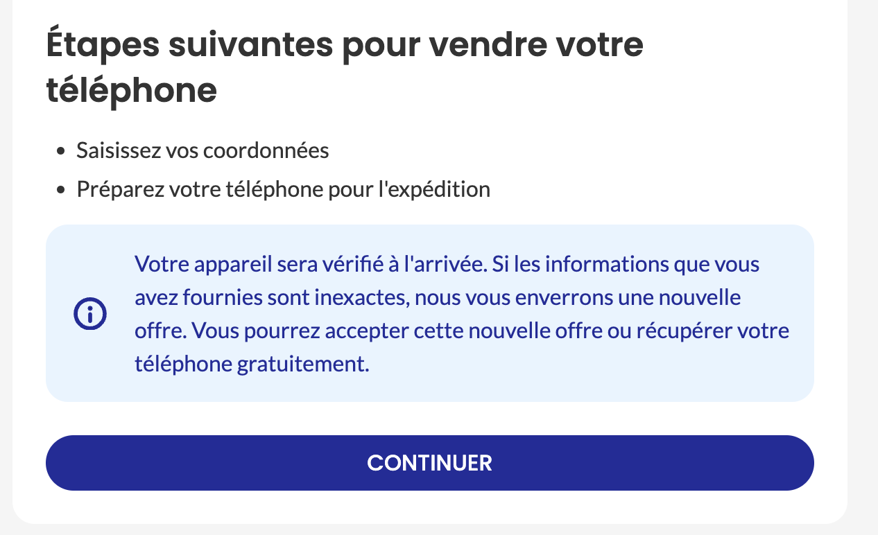 - La reprise sans risque (téléphone retourné gratuitement si l’estimation ne convient pas)