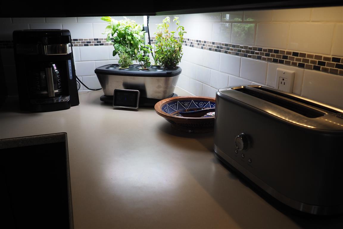 Le modèle testé est un des plus hauts de la gamme : le Bounty Elite. Il est en inox et s’agence très bien avec une cuisine de style moderne. Il permet de planter neuf types de plants. Comme mentionné plus haut, il est connecté, et communique ses besoins ou informe de son statut via votre iPhone/iPad ou votre device Android (à quand la possibilité d’ajouter de l’eau ou de l’engrais par le bais de l’application ?).