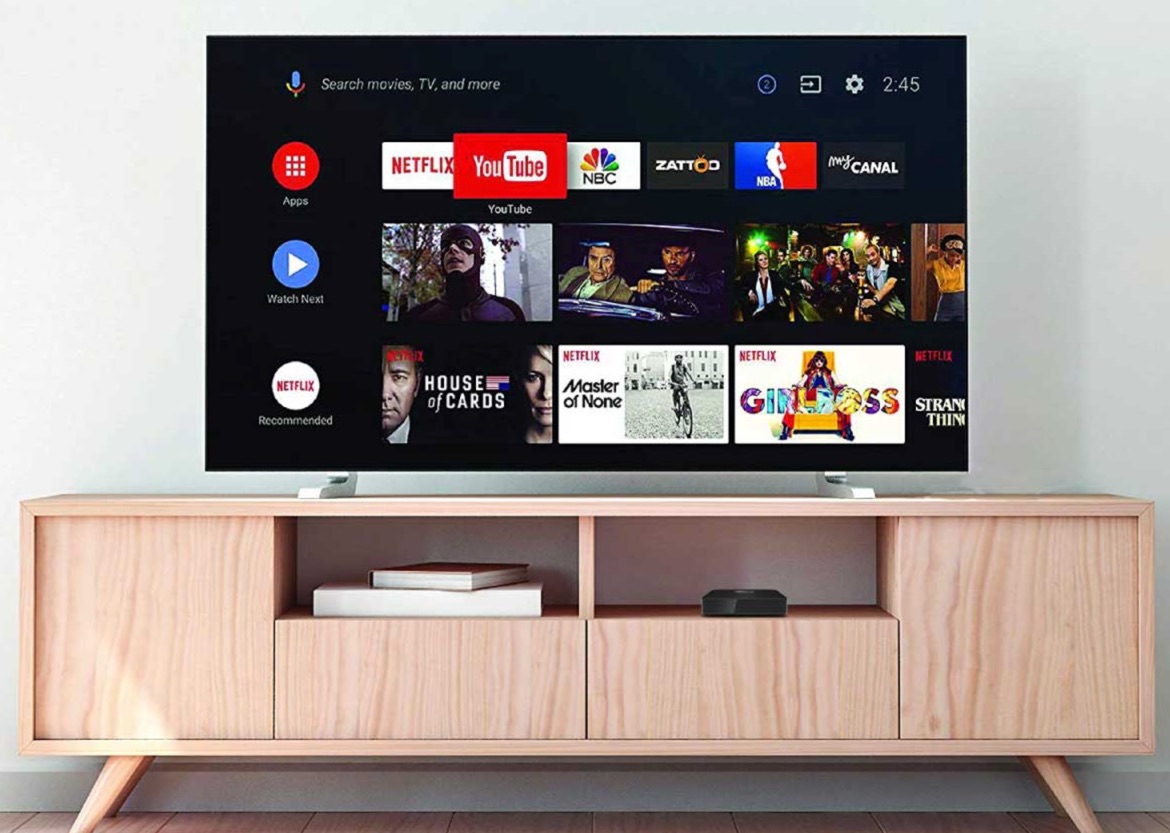 De base, l’interface principale (le bureau finalement) vous propose déjà un bon set d’applications : Youtube, Netflix, … Mais vu que vous avez accès à tout le PlayStore d’Android, il vous sera de toute façon loisible d’installer vos applications favorites : VLC, Kodi, MX Player, …