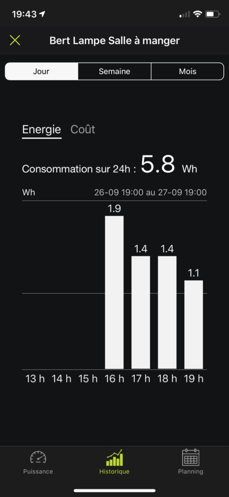 Par contre, un des gros points forts de cette AwoX Plus Plug est d’offrir une mesure assez efficace de votre consommation en temps réel. Et c’est bien là que, grâce à son App et ses historiques que cette prise risque de frapper fort car il s’agit d’un prix au raz des pâquerettes pour une fonctionnalité de la sorte.