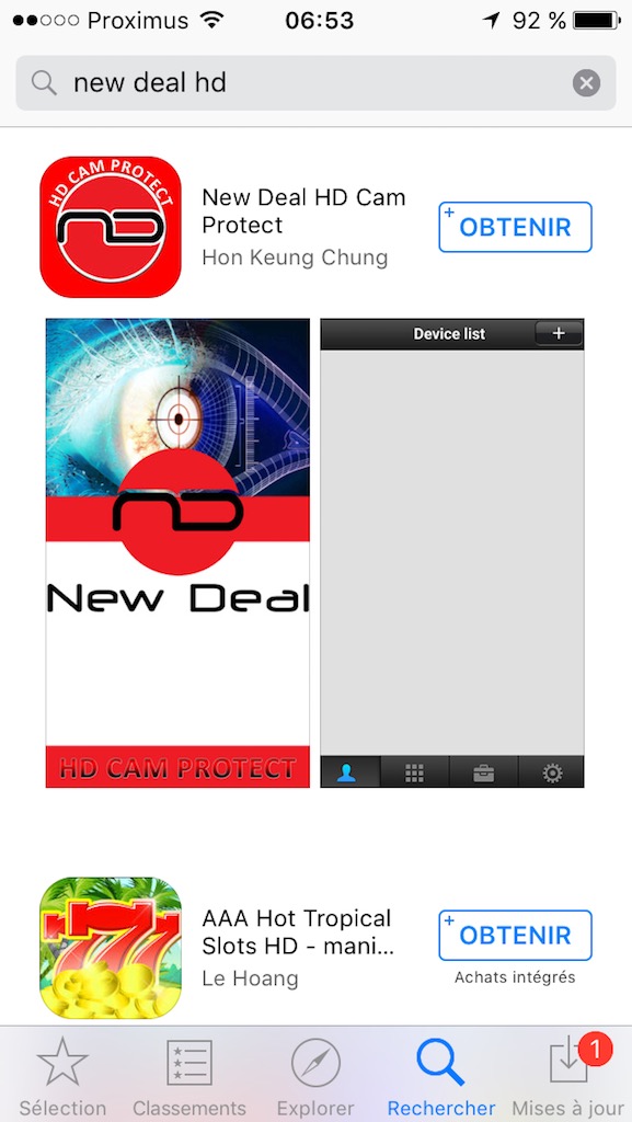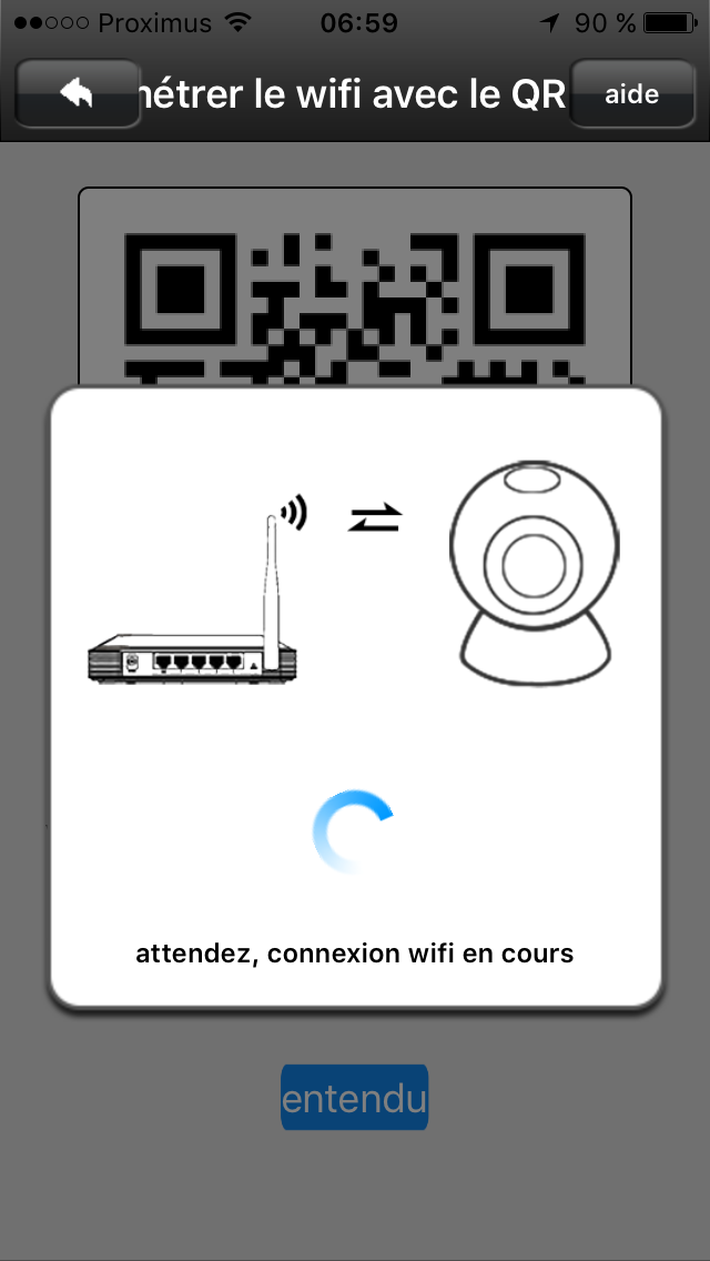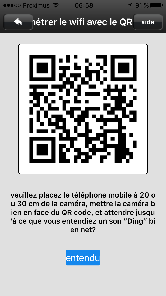 La caméra est livrée avec un petit guide tout simple, tout succinct et … en français, il fallait le souligner. Il vous faudra installer l’application New Deal HD et ensuite ajouter la caméra. Cela s’opère de manière assez conviviale et sans accrocs : Il suffit de positionner le QR code affiché sur l’écran de votre smartphone devant la caméra pour qu’elle émette un ‘Bip’ de reconnaissance. Par la suite, vous suivez les instructions de l’application et tout se passe de manière très fluide. Aucune sueur froide, aucun juron, non, rien. Bref, c’est parfait et le commun des mortels peut y arriver sans lancer le dispositif au travers de la pièce. C’est déjà pas mal, non ?