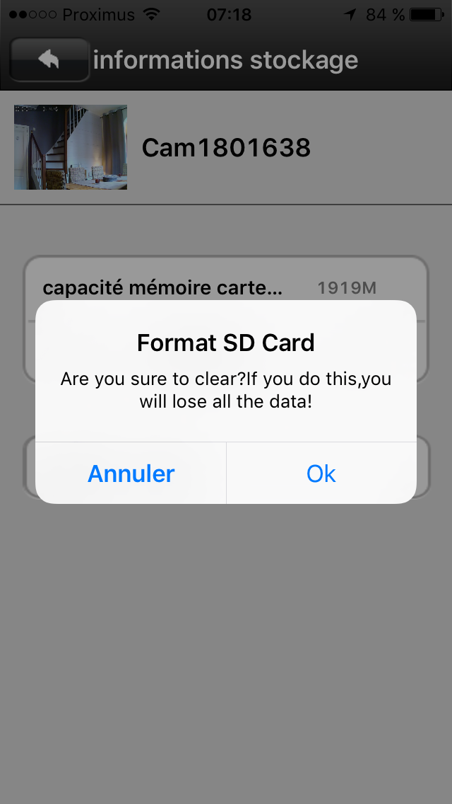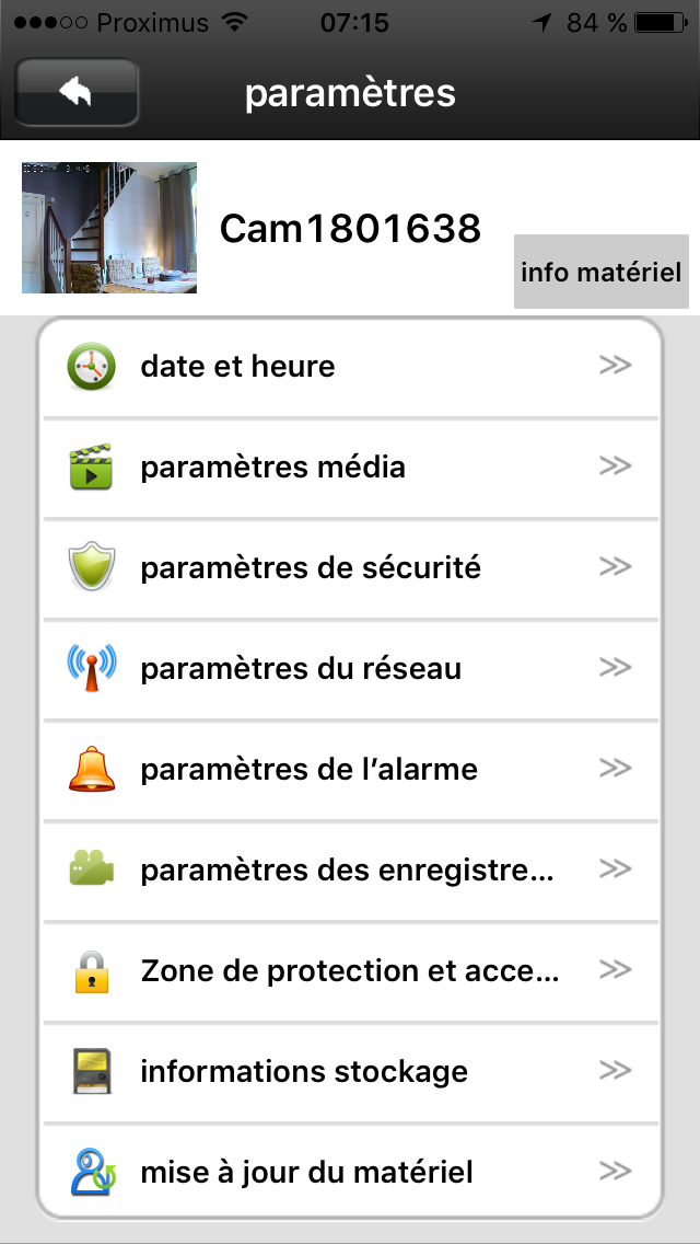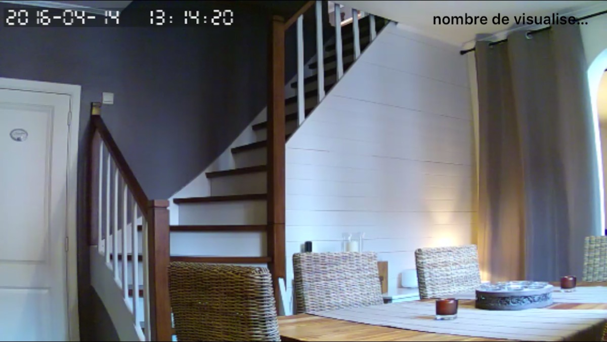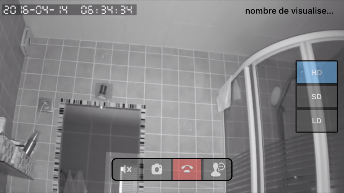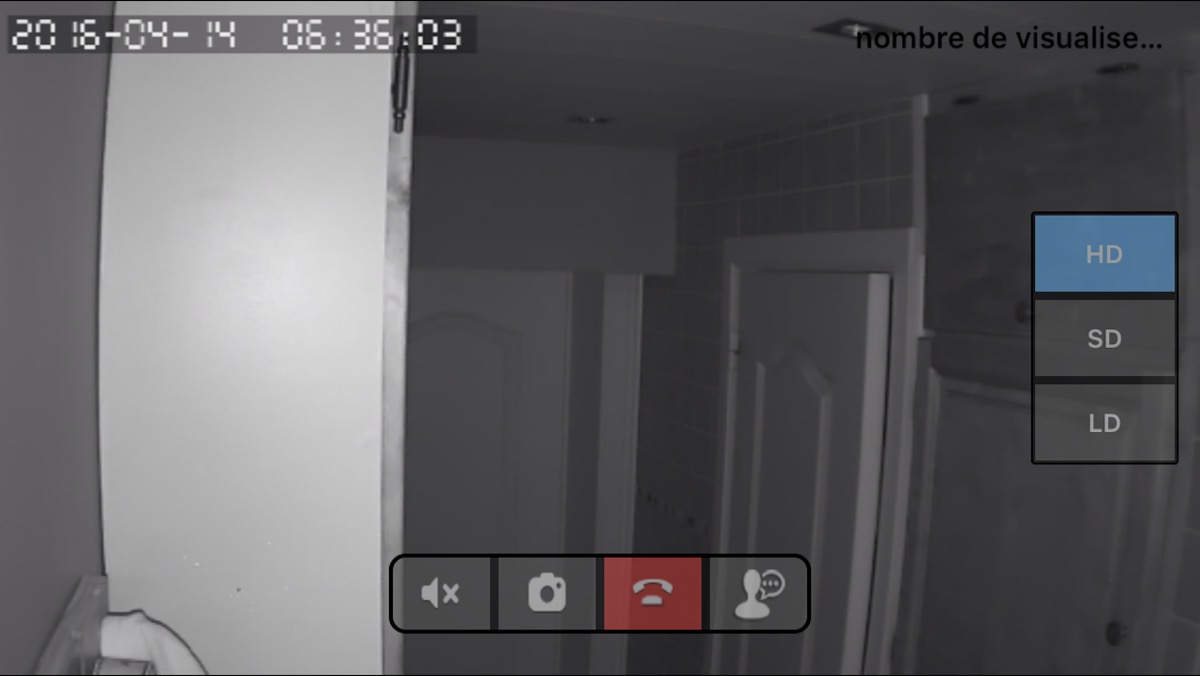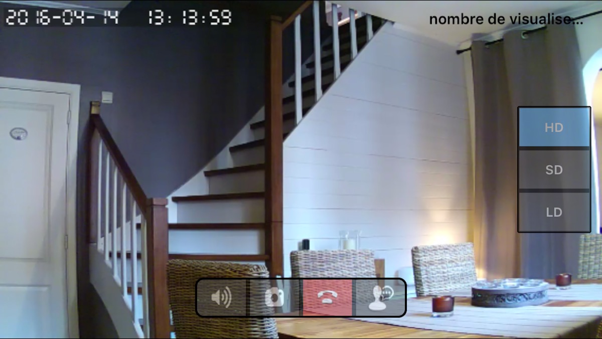 L’image apparait alors sur votre téléphone et il vous est possible d’écouter ce qui se passe dans la pièce et même de parler étant donné que la caméra est pourvue d’une petit haut-parleur qui aura une autre utilité … que nous verrons plus tard. L’image est de bonne qualité (720p) et il est possible de choisir la définition si vous êtes, par exemple, en 3G à l’extérieur et que vous ne souhaitez pas vider votre forfait data.