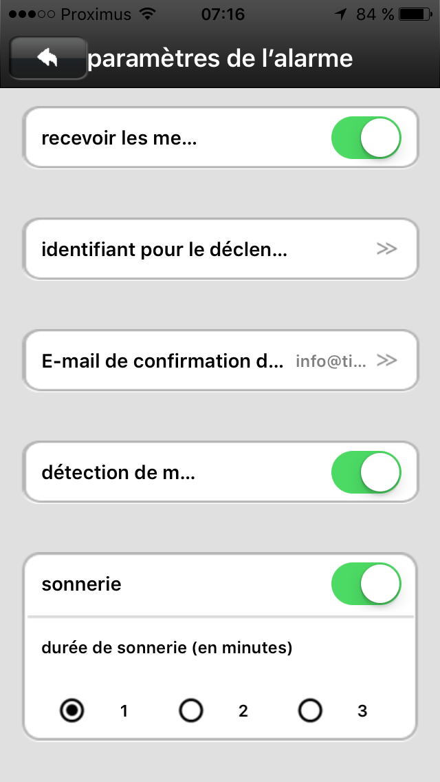 • Alarme sonore locale