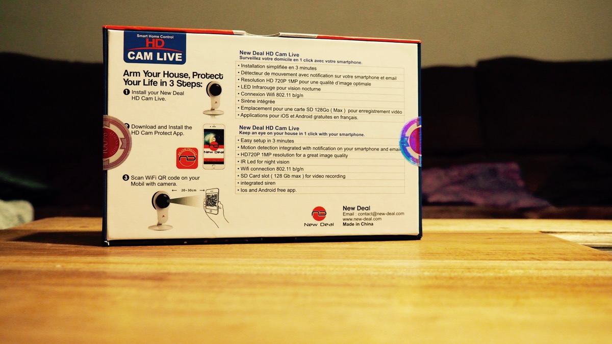 Allez, hop, c’est reparti pour un test de caméra IP. J’en ignore le nombre mais je pense que j’ai dû en passer une bonne vingtaine sur le grill depuis quelques années. Passons donc à cette HD Cam Live de la marque, totalement inconnue jusqu’ici : New Deal.