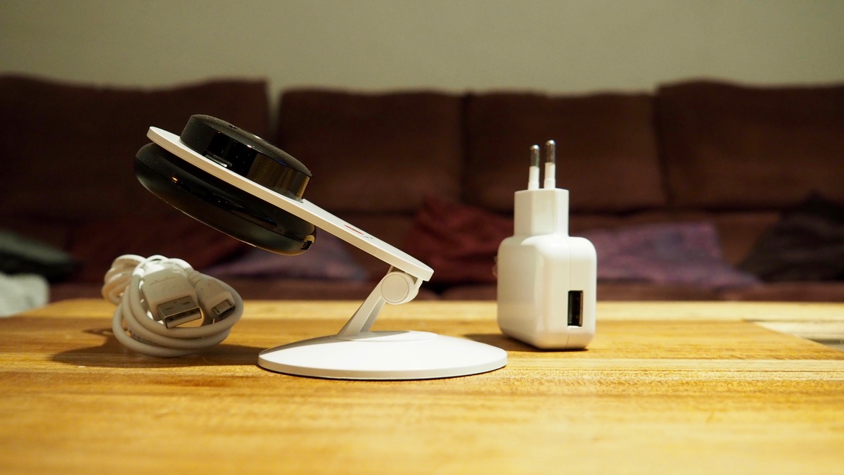 L’assemblage est de bonne qualité, le pied est assez large pour que la caméra tienne bien en place, le tout fonctionne sur rotule afin de la positionner dans tous les sens. Petite astuce : avec un simple collant double face, vous pouvez facilement fixer la caméra sur une fenêtre. C’est tout bête, mais je suis certain que vous n’y aviez pas pensé.