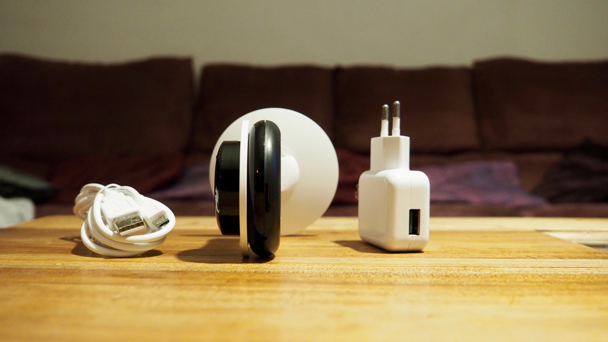 La caméra est fournie avec un cable micro USB et un petit chargeur blanc et c’est plutôt une bonne nouvelle, nous restons dans les standards du marché et nous n’avons pas de bloc d’alimentation low cost comme on peut souvent le rencontrer.