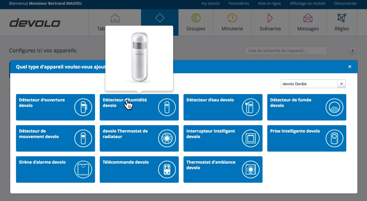 A partir de l’interface MyDevolo, accessible depuis Internet, je me jette corps et âme dans la connexion de ces deux modules. Pour le détecteur d’inondation, il suffit d’enlever la petite languette qui bloque la batterie et de demander l’ajout d’un périphérique et c’est bingo en moins de deux minutes. Idem pour la sirène, celle-ci se met joyeusement à clignoter en rouge, signe que l’appairage est en cours. Oui, nous sommes face à Devolo et, pour l’avoir testée un peu dans tous les sens, la centrale domotique est fiable et, en près de deux ans d’utilisation, je n’ai rencontré aucune fausse alerte, configuration égarée ou dysfonctionnement aléatoire.
