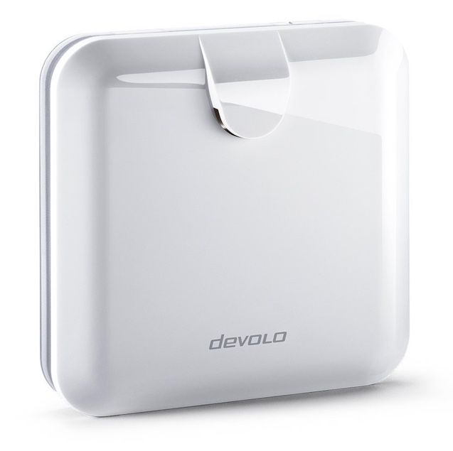 Toutefois, il serait bon de rappeler ce que représente le Devolo Home Control. Le kit de démarrage comprend un élément indispensable : La box domotique. Elle se présente sous la forme d’un gros pavé blanc à brancher sur une prise de courant et, si vous ne possédez pas de réseau dLan (le réseau CPL de Devolo), il vous suffit de la connecter à votre routeur Internet.