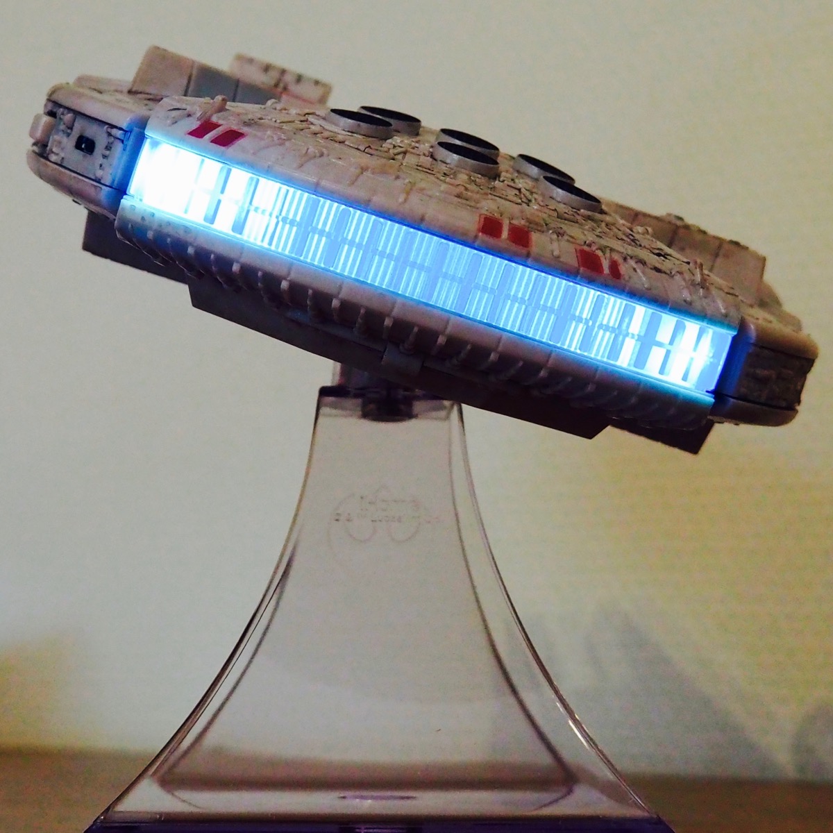 Le haut-parleur se trouve sous le Faucon Millénium, celui-ci n’est pas très imposant mais les voix sont vraiment bien claires tout en sachant que le manque de basse de fait ressentir en raison de la petite taille du baffle. Néanmoins, je suis assez surpris par la qualité et le son peut donc être qualifié de correct, du moins pour un ado qui souhaite le faire trôner sur son bureau durant ses épisodiques relecture de cours.