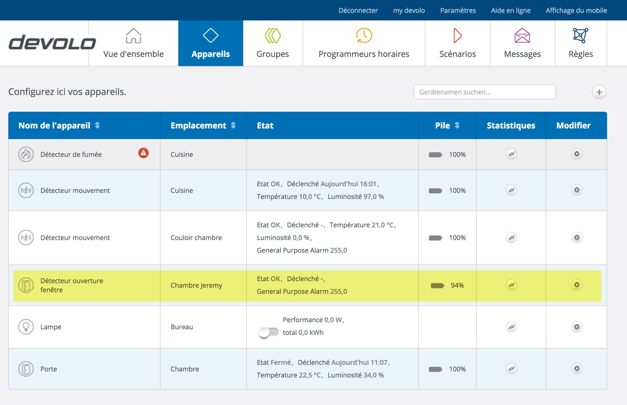 Test – Fibaro capteur ouverture sur Home Control Devolo