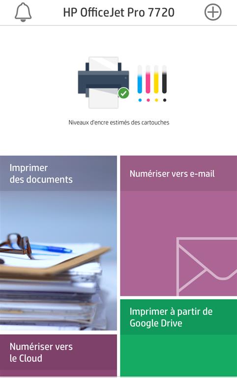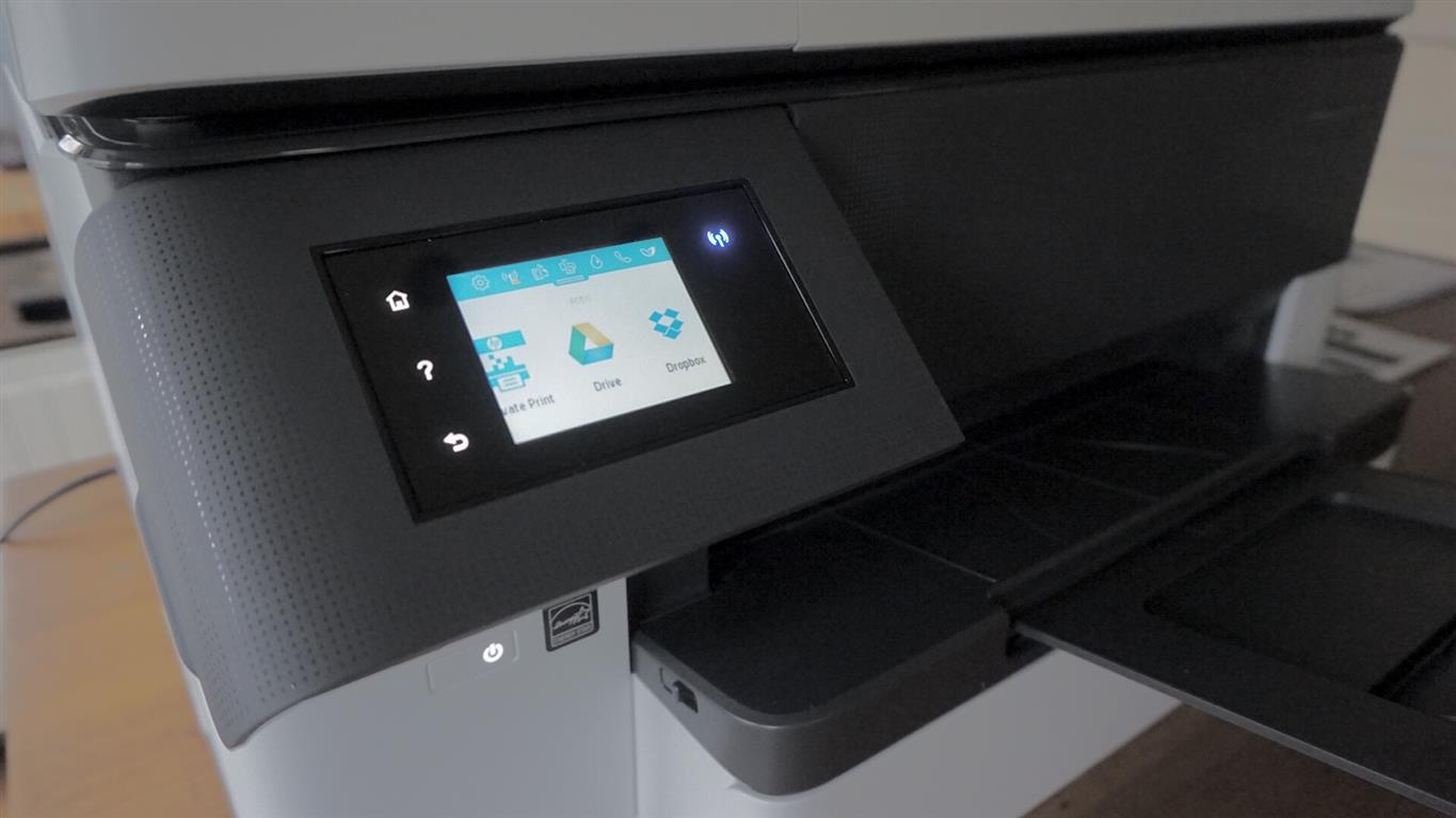 L’Officejet Pro 7720 est équipée d’un écran couleur et tactile de 6,7 cm inclinable à 45°. Même si il ne réagit pas comme les derniers smartphones du marché, il s’avère très pratique pour configurer et lancer les divers impressions ou encore naviguer dans les menus.