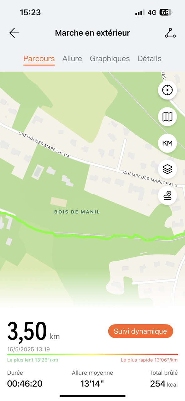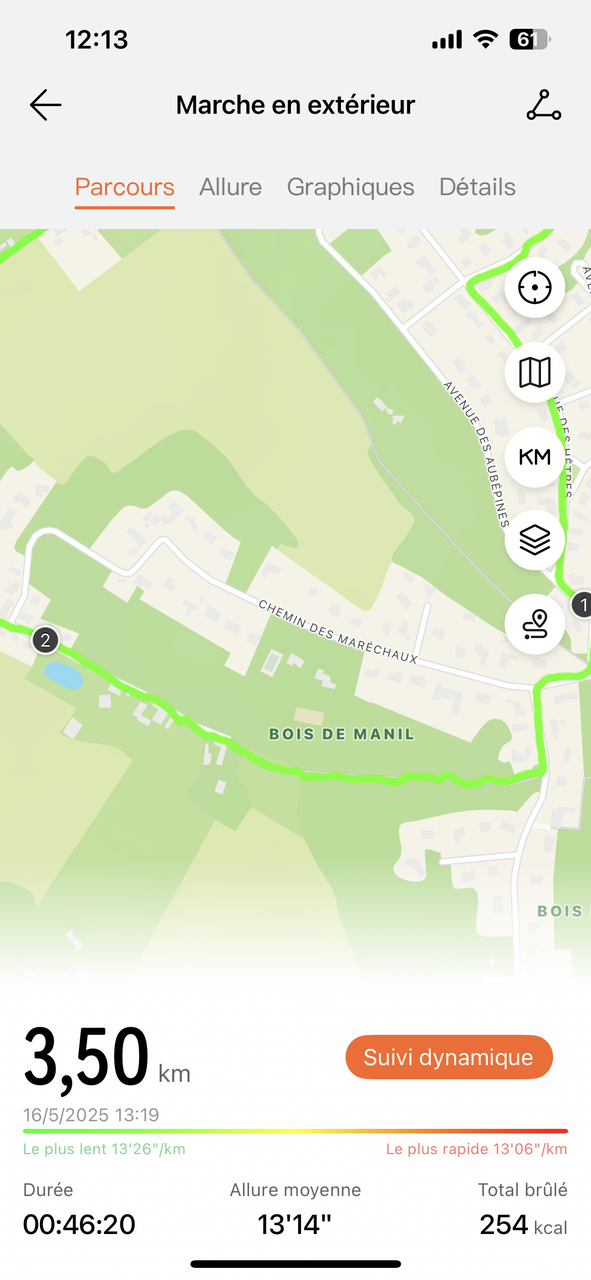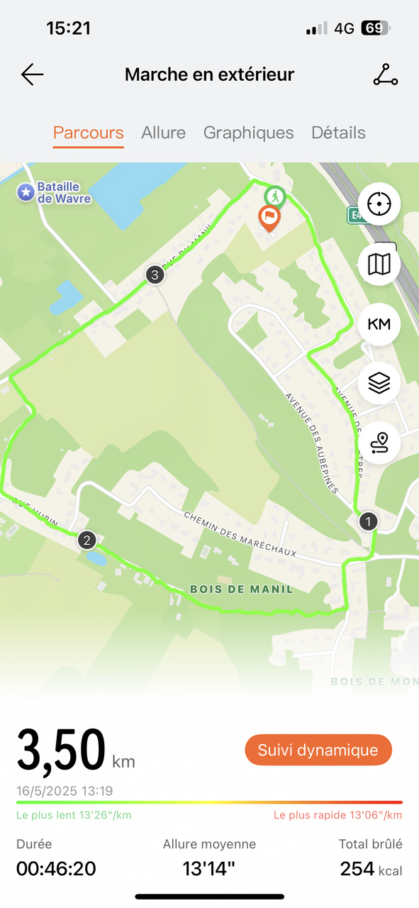 Mention spéciale au GPS Sunflower (double bande, cinq systèmes GNSS) : précis, rapide, même en forêt (selon Huawei, il offre une précision accrue de 35% par rapport à ses prédécesseurs). Lors de mes tests, la montre a su capter le signal en quelques secondes et a parfaitement suivi mes parcours, sans décrochage ni dérive notable, là où certains modèles concurrents perdent parfois le fil. C’est un vrai atout pour les coureurs, cyclistes ou randonneurs exigeants.