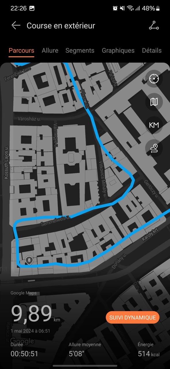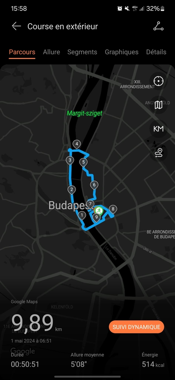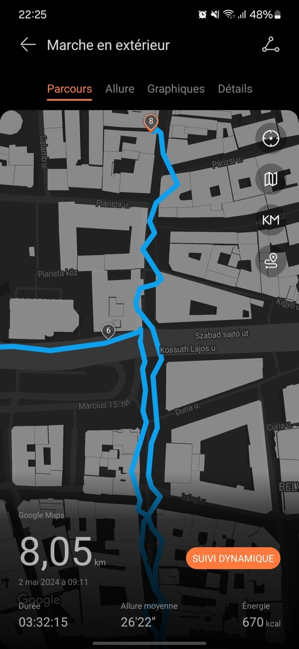 Matyas a profité d’un citytrip à Budapest pour tester les fonctionnalités sportives de la montre, notamment le GPS en mode promenade et course à pied.