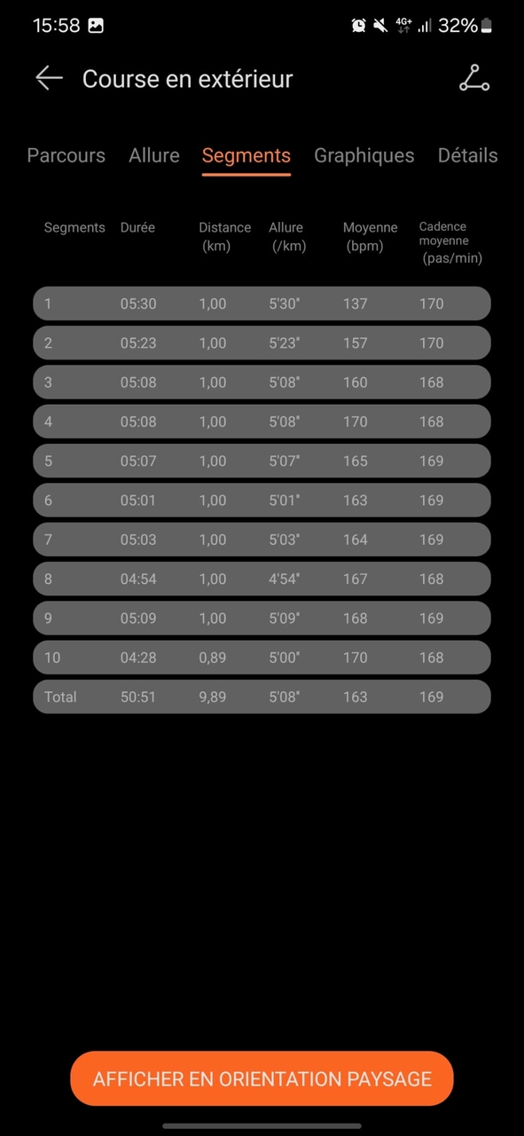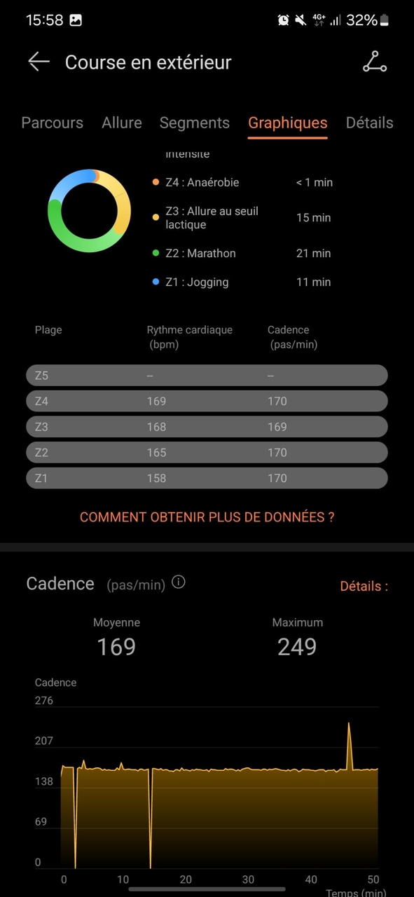 En mode course, la précision de la mesure du rythme cardiaque n’est pas non plus excellente, mais elle reste correcte pour un sportif lambda.
