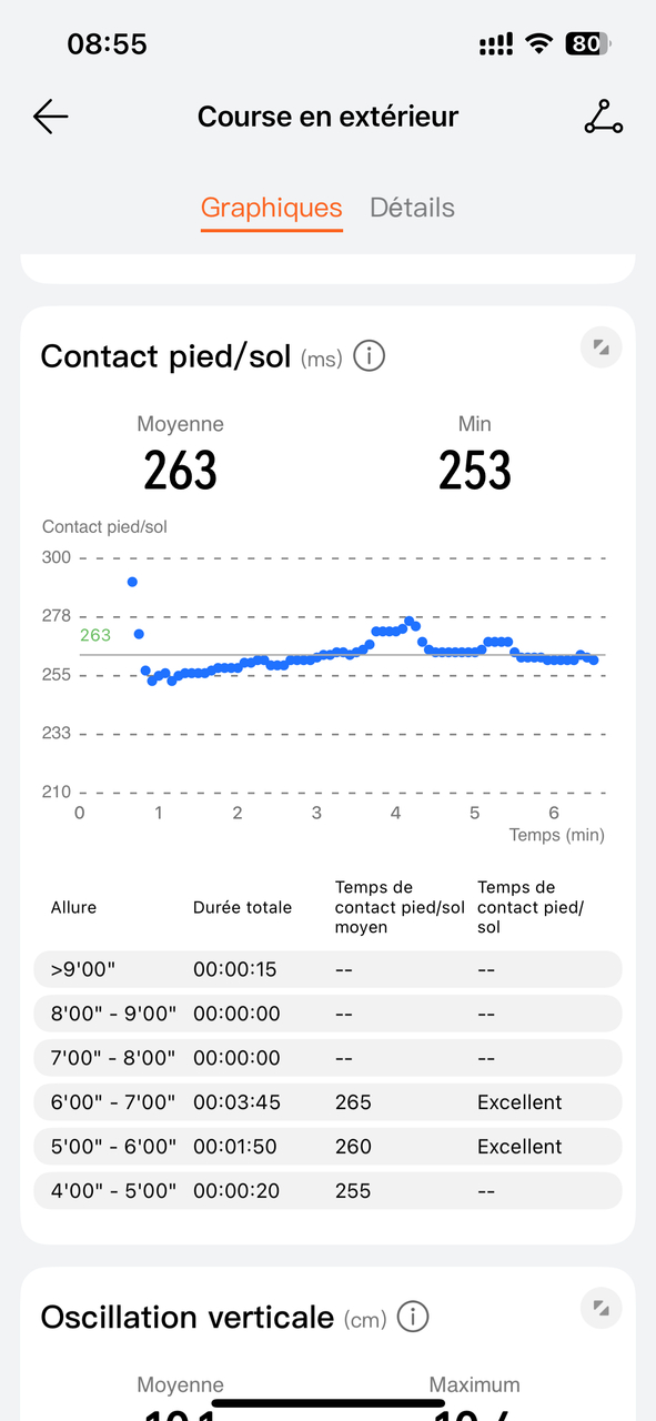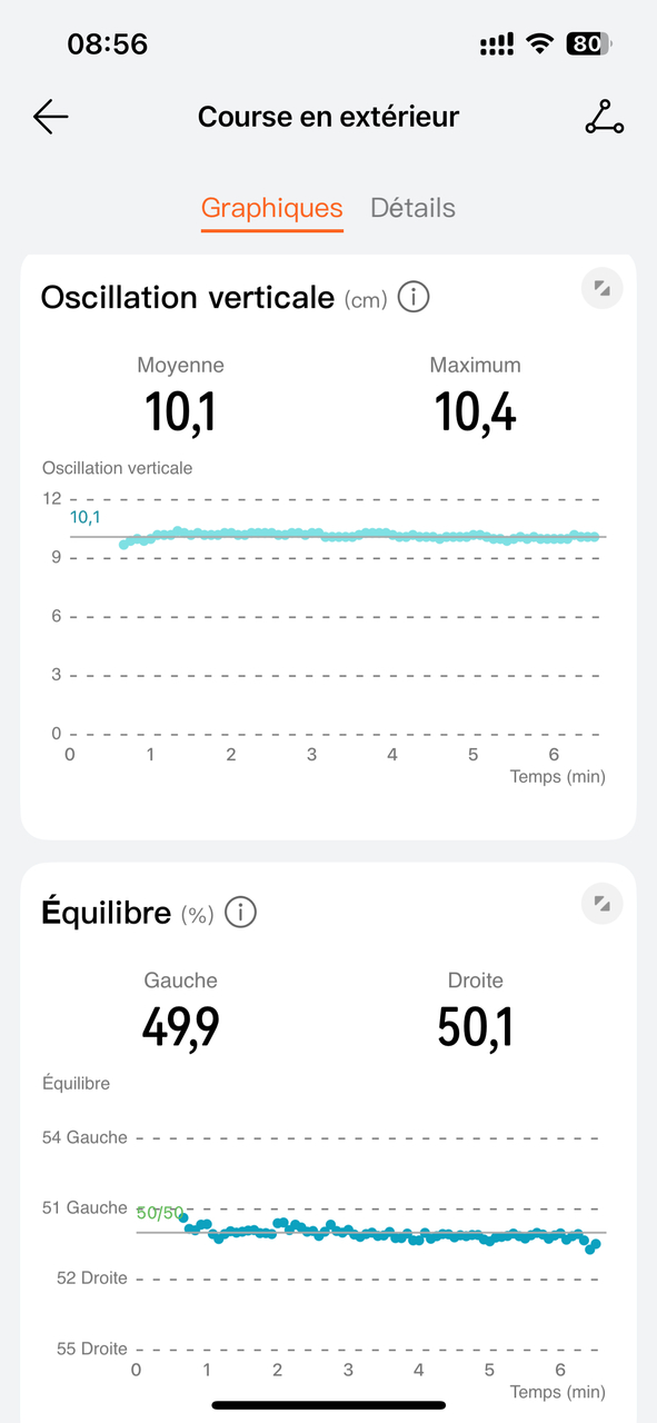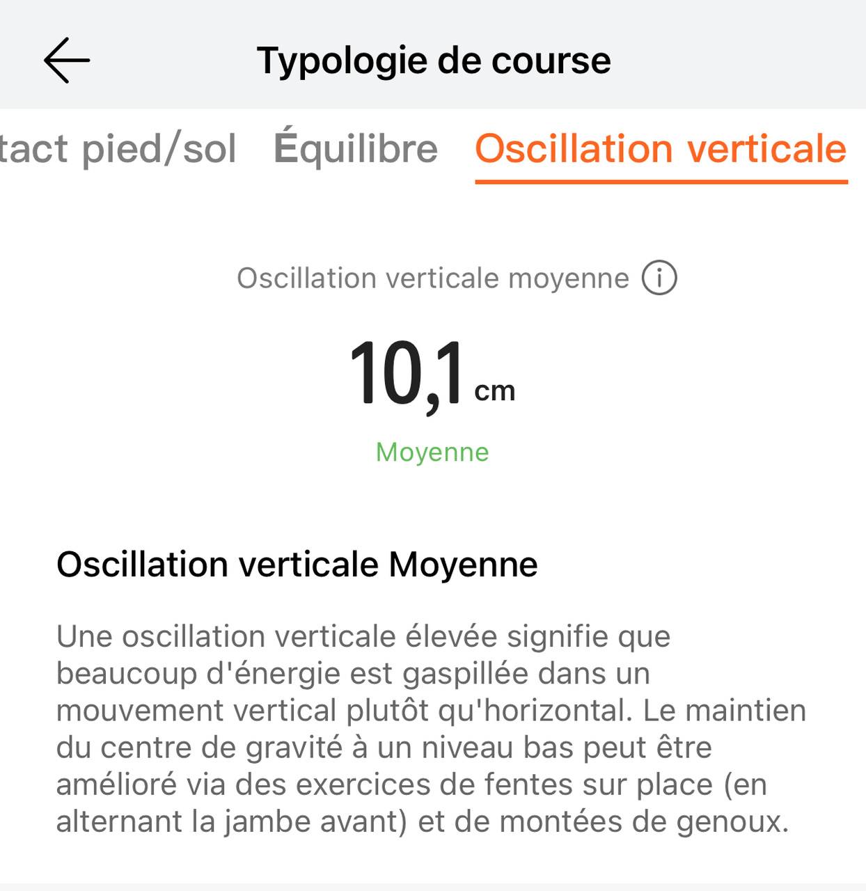 - Oscillations verticales moyennes : qui mesurent l’amplitude de vos rebonds à chaque foulée.