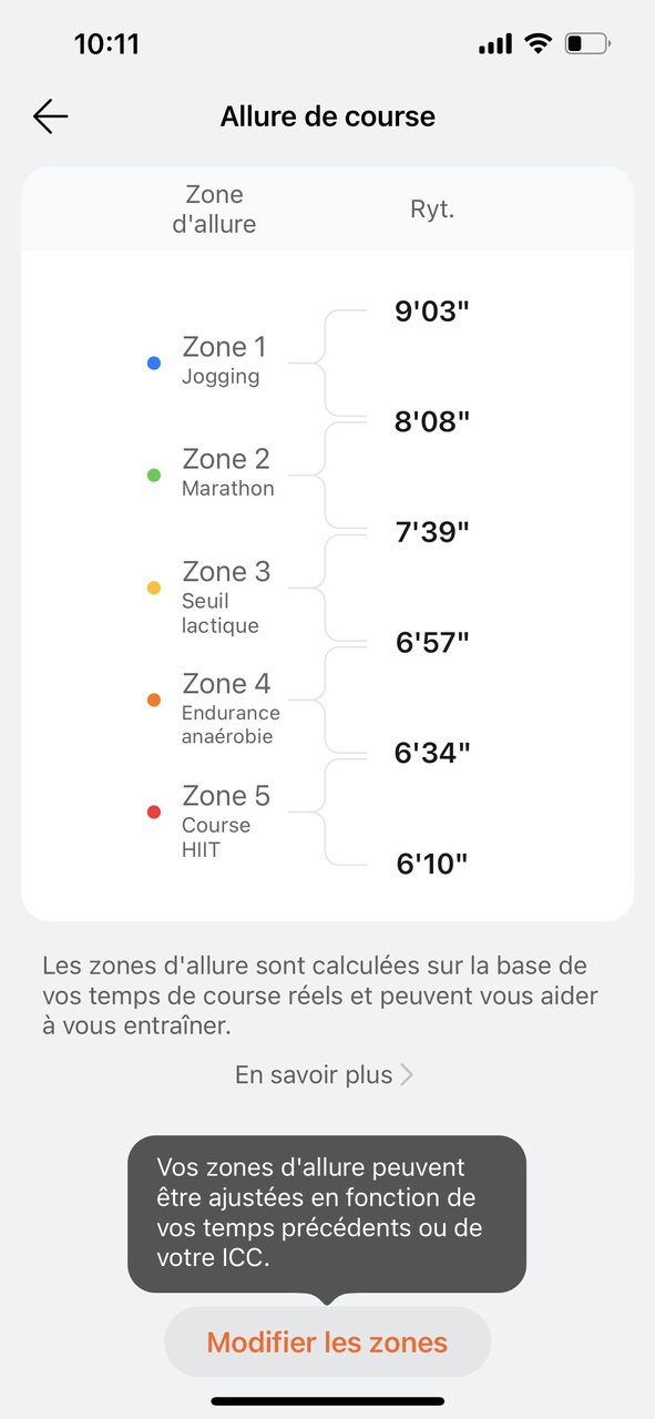 Pendant notre période de test de 6 jours, incluant 3 sessions de course en extérieur et plus de 10.000 pas par jour, avec tous les capteurs activés, la montre affichait encore une impressionnante réserve de 55 % de batterie ! Avec une simple règle de trois, on peut déduire que la batterie peut tenir entre 10 et 14 jours.