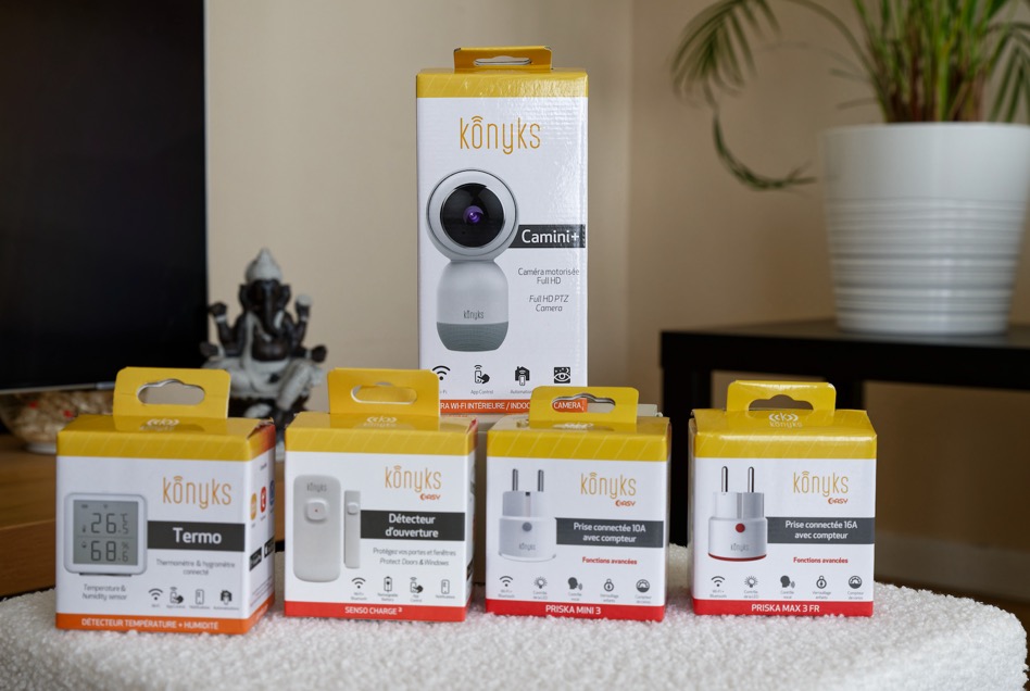 Pour ce prix, Konyks vous propose des produits de qualité mais, surtout des dizaines de possibilités de scénarii à configurer qui, d’une manière ou d’une autre, vous faciliteront la vie ou vous rassurerons contre les intrusions.