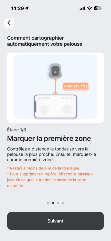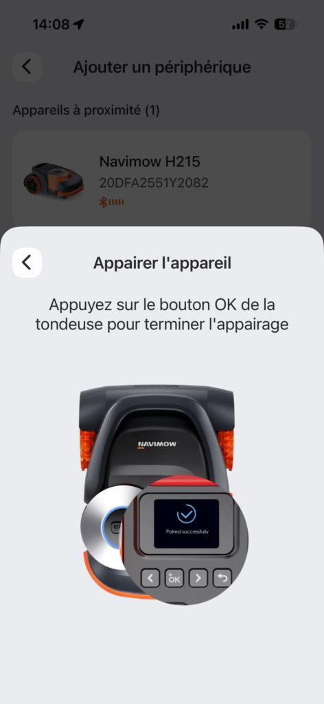 La reconnaissance de la tondeuse via l’App se résume à ces quatre points, pliés en une minute :