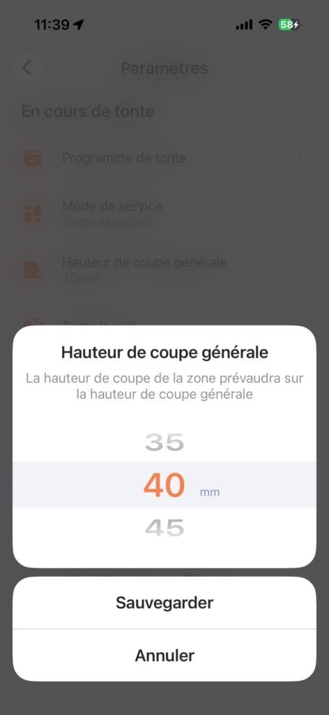 Au delà de ces aspects, vous aurez aussi la possibilité de consulter un rapport d’activité de votre joyeux compagnon de tonte, tout comme définir une hauteur de tonte ainsi qu’une vitesse de déplacement. Ce dernier point est assez sympathique car il vous permet de passer d’un mode “Formule 1” au mode “Escargot précis” si vous souhaitez que le robot s’attarde avec précaution sur votre délicat gazon.