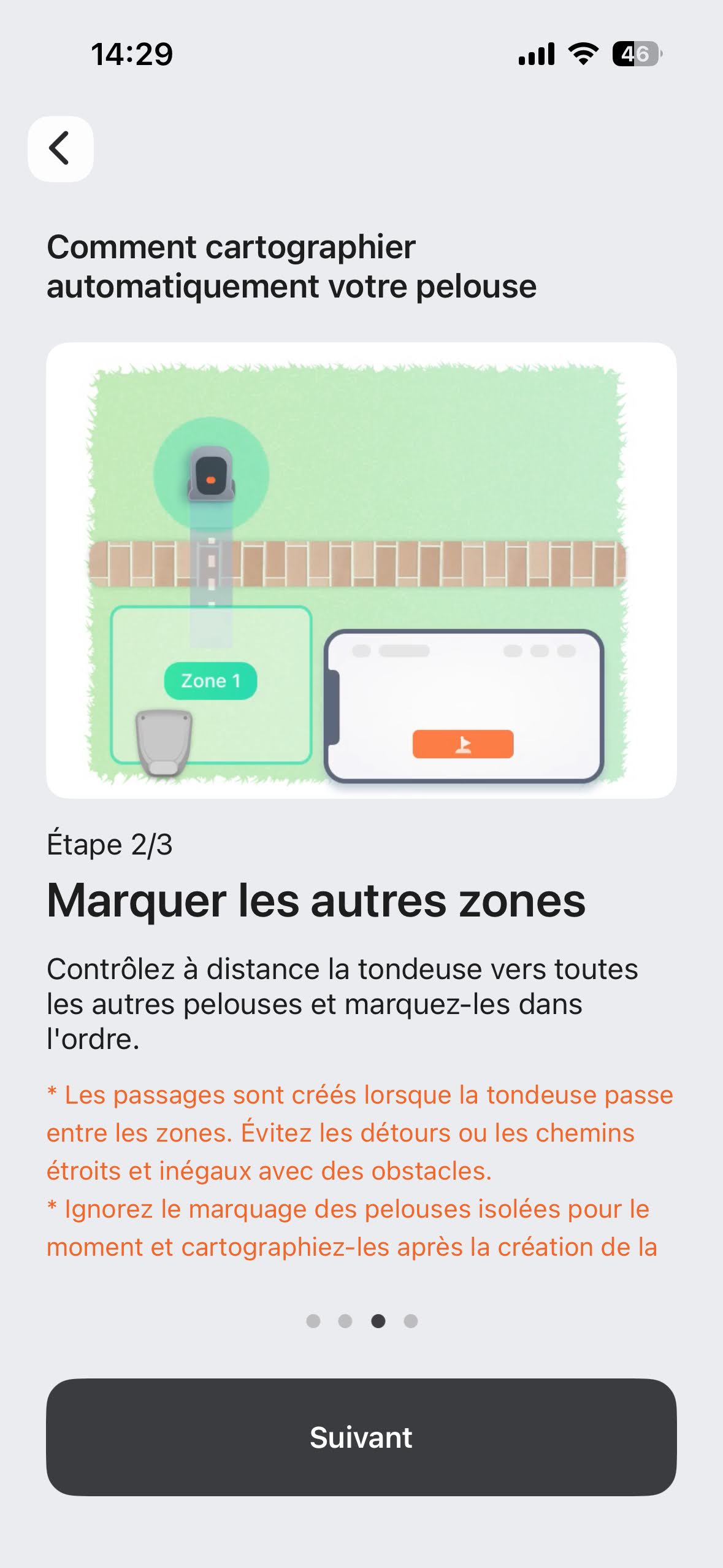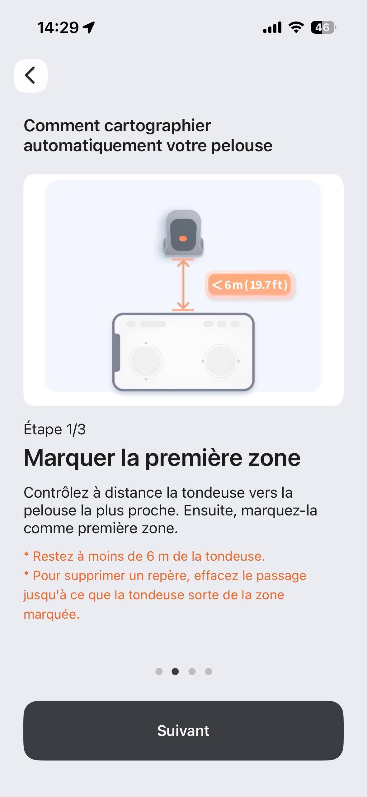 La reconnaissance de la tondeuse via l’App se résume à ces quatre points, pliés en une minute :