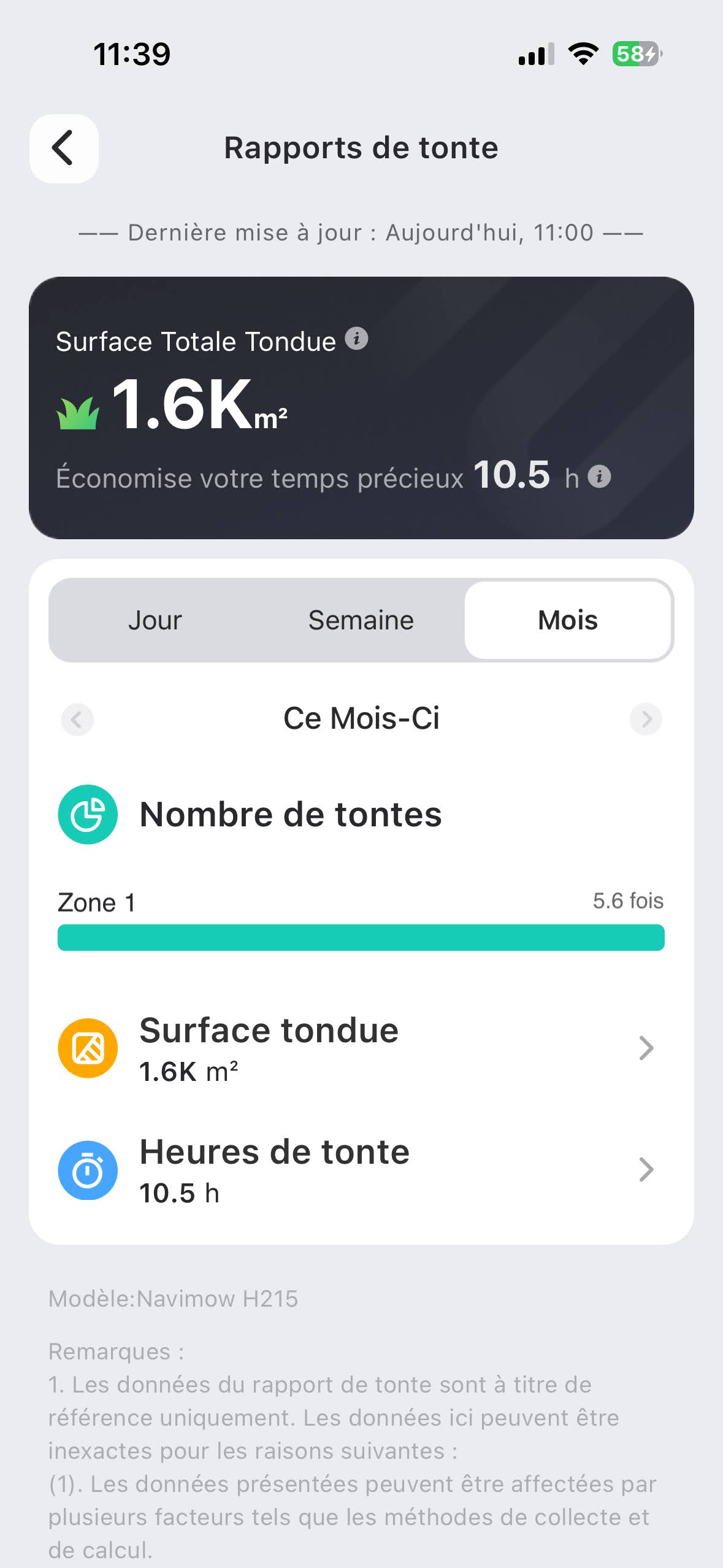 Au delà de ces aspects, vous aurez aussi la possibilité de consulter un rapport d’activité de votre joyeux compagnon de tonte, tout comme définir une hauteur de tonte ainsi qu’une vitesse de déplacement. Ce dernier point est assez sympathique car il vous permet de passer d’un mode “Formule 1” au mode “Escargot précis” si vous souhaitez que le robot s’attarde avec précaution sur votre délicat gazon.