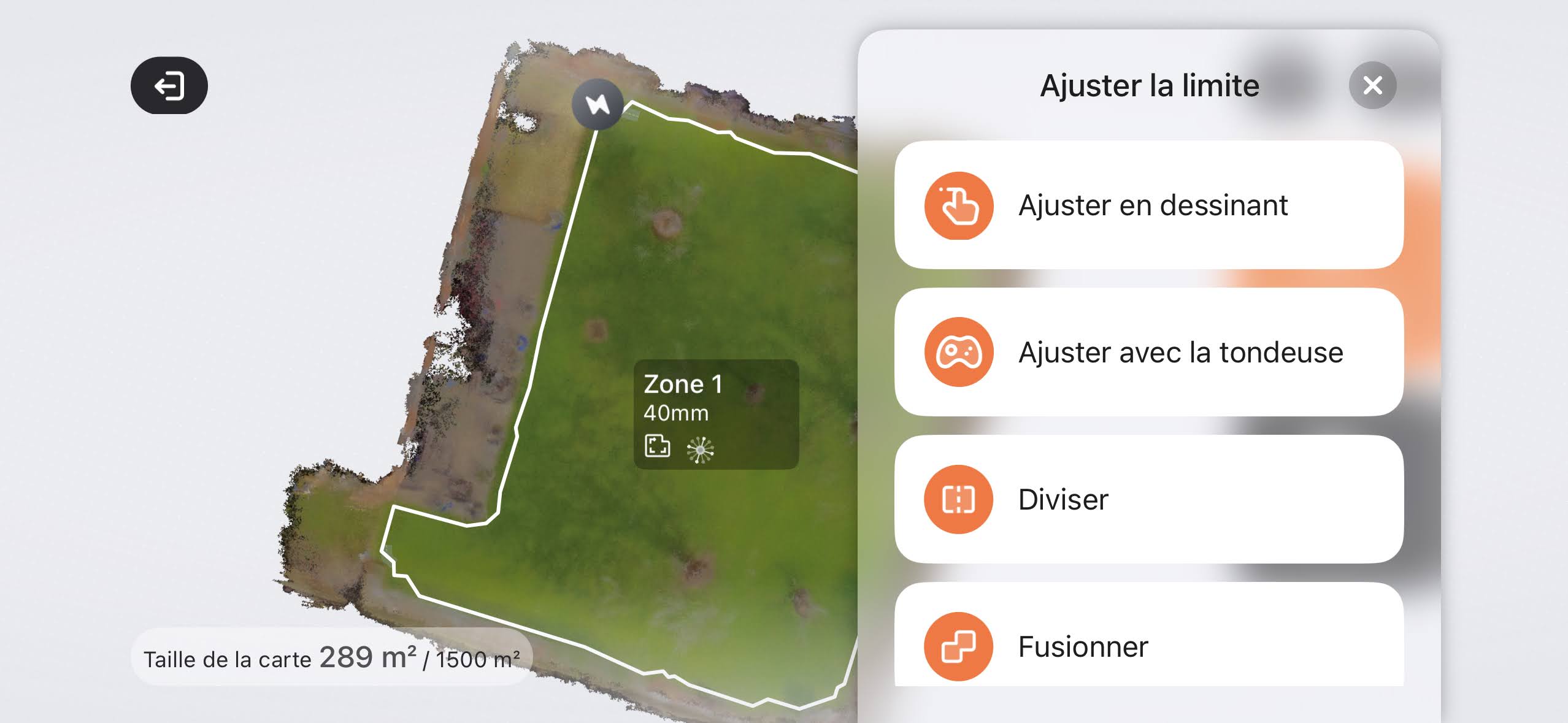 Le choix a été simple pour moi : Etant donné que mon objectif était que la tondeuse soit opérationnelle dans un temps record, j’ai opté pour la découverte automatique : Il vous suffit de balader la tondeuse quelques mètres avec votre téléphone en mode joystick, jusqu’à ce qu’elle détecte du gazon, de confirmer et, bam, la voilà partie pour une balade de reconnaissance. En moins de 10 minutes, elle avait parcouru le périmètre de mon jardin, découvert la terrasse pour la longer et s’était gentiment arrêtée à son point de départ, à-côté de la station de recharge.